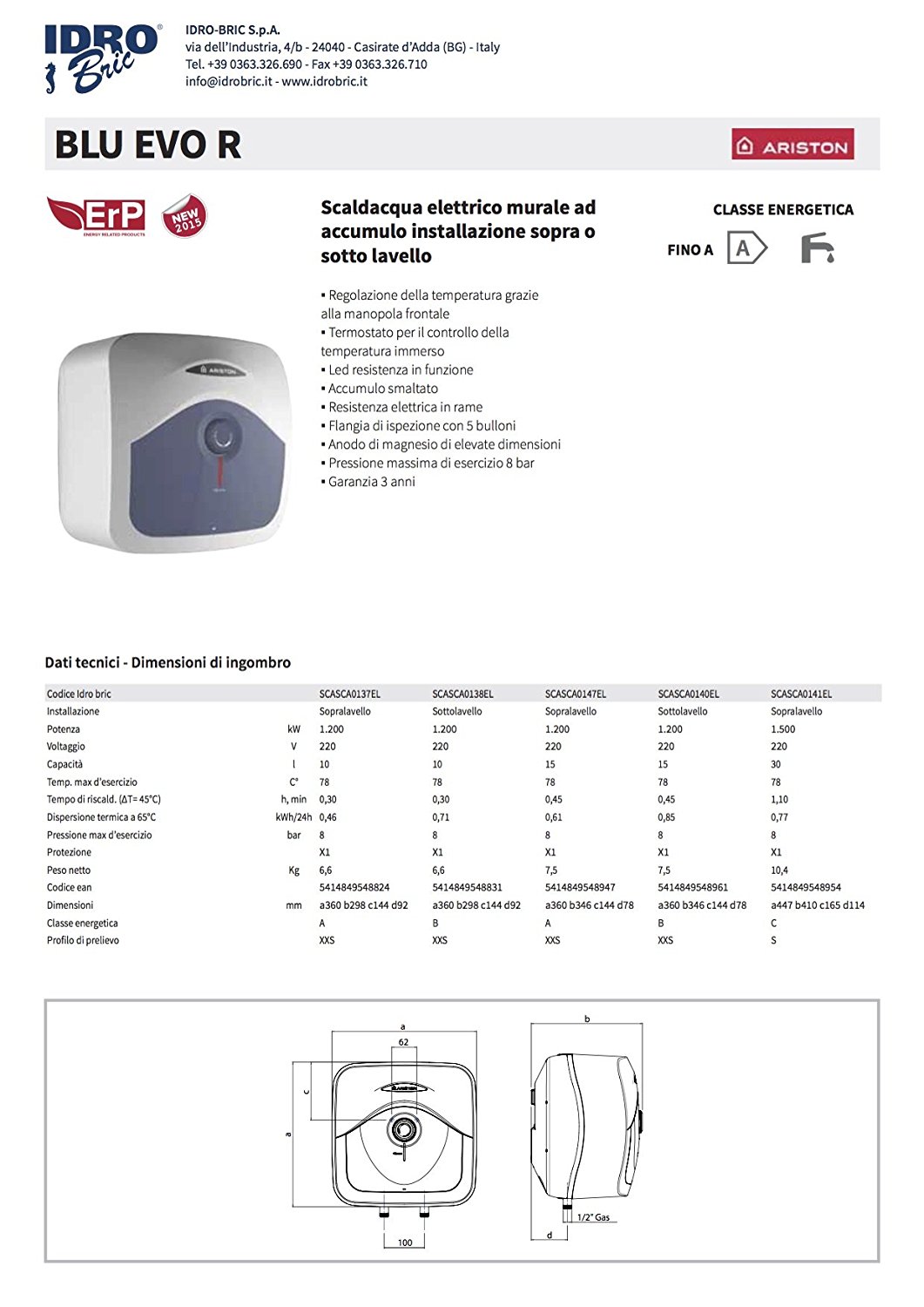 Recensisci per primo “ARISTON 3100321 Scaldabagno Elettrico Blu EVO R Sopra Lavabo a Norme EU, 30 litri” Annulla risposta