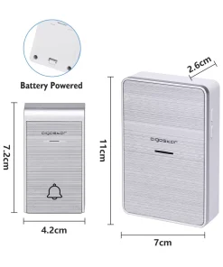 Campanello senza fili Aigostar da esterno a batteria 1 pulsante e 2 riceventi colore argento