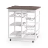 Carrello da Cucina in Pino Con Piano in Ceramica e Cestelli