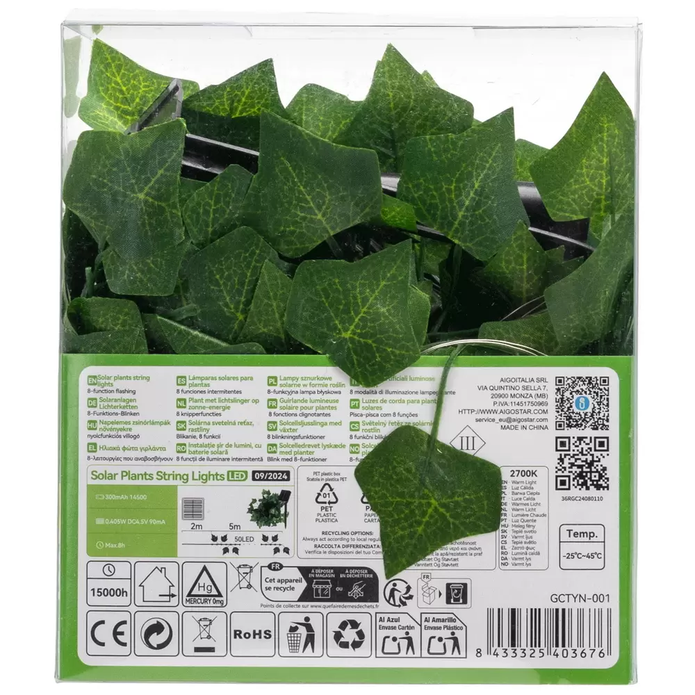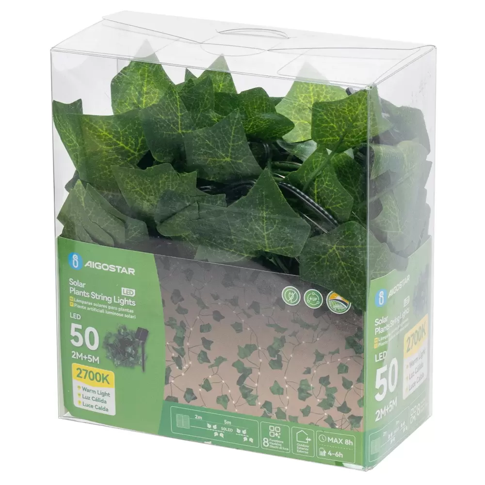Porta un tocco di natura e magia nei tuoi spazi esterni con la Catena Luminosa Decorata con Foglie d’Edera a Energia Solare. Con i suoi 50 LED a luce bianco caldo distribuiti su 5 metri di lunghezza, questa decorazione è perfetta per creare un’atmosfera accogliente e suggestiva. Le foglie di colore verde scuro, realistiche e dettagliate, si intrecciano armoniosamente lungo il filo, donando un effetto naturale e raffinato a balconi, pergolati, cancelli e giardini.