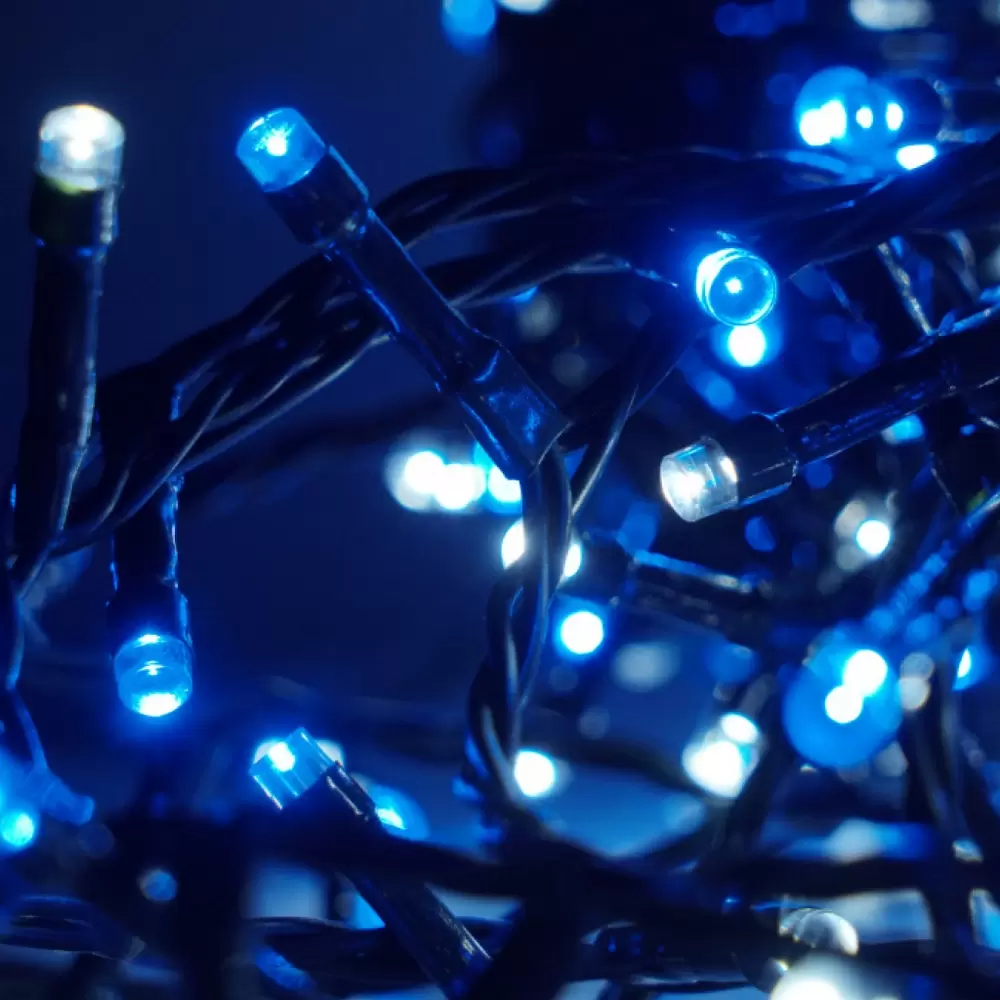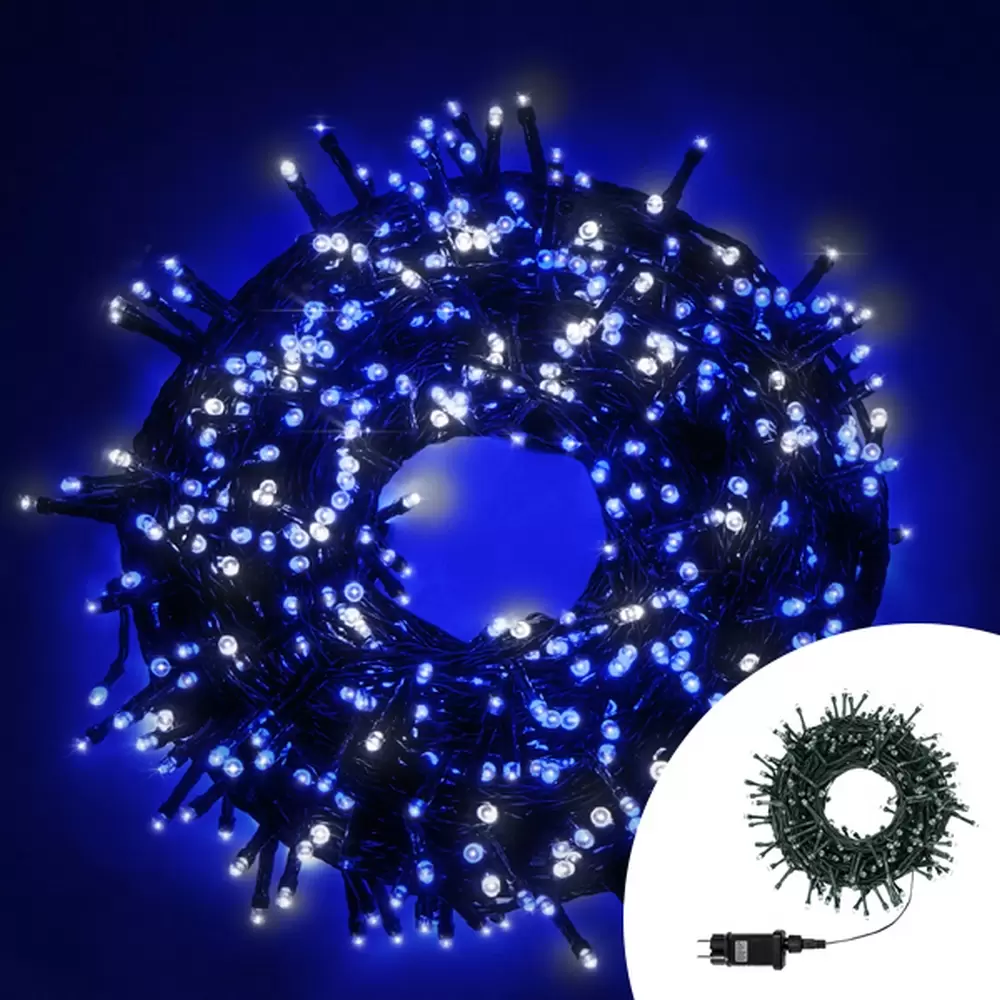 Catena di luci 15 metri da 300 Led Bianco Freddo e Blu con cavo verde Wisdom
