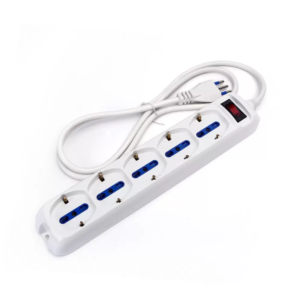La ciabatta multipresa elettrica slim ha 5 attacchi schuko bipasso 10A/SPA11 – 16A/P17/11 con interruttore e un cavo da 1,5 metri con spina da 10A con protezione di sovraccarico e pulsante reset. La ciabatta è in grado di supportare una potenza massima di 2300W. Inoltre, ha anche la protezione per i bambini e certificazione CE, RoHS e TUV.