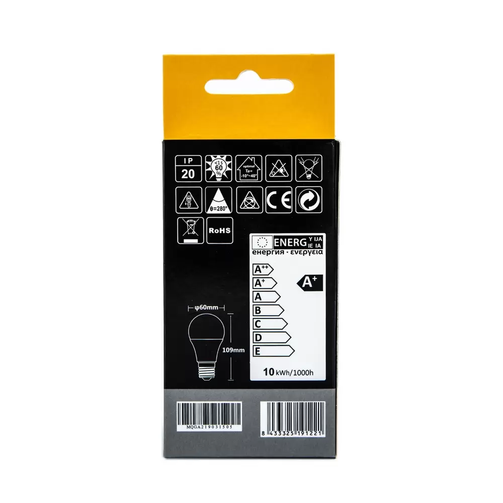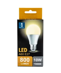 La lampadina a Led con attacco E27, comunemente detto “attacco grande”, con forma A60 a bulbo da 10W, corrispondente ad una tradizionale lampadina da 69W, è il bilanciamento perfetto tra prestazioni e impatto energetico.