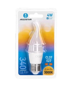 La lampadina a Led con attacco E27, comunemente detto “attacco grande”, con forma CL37 a colpo di vento 4W, corrispondente ad una tradizionale lampadina da 30W, è la miglior soluzione per contenere i consumi e non intaccare le prestazioni.