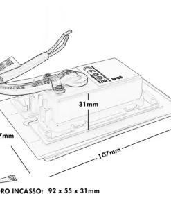 Questo modello è di facile installazione grazie alla sua compatibilità con la classica scatola 503. Inoltre, è costruito in acciaio, di colore bianco e argento, di forma rettangolare e con copertura opaca.